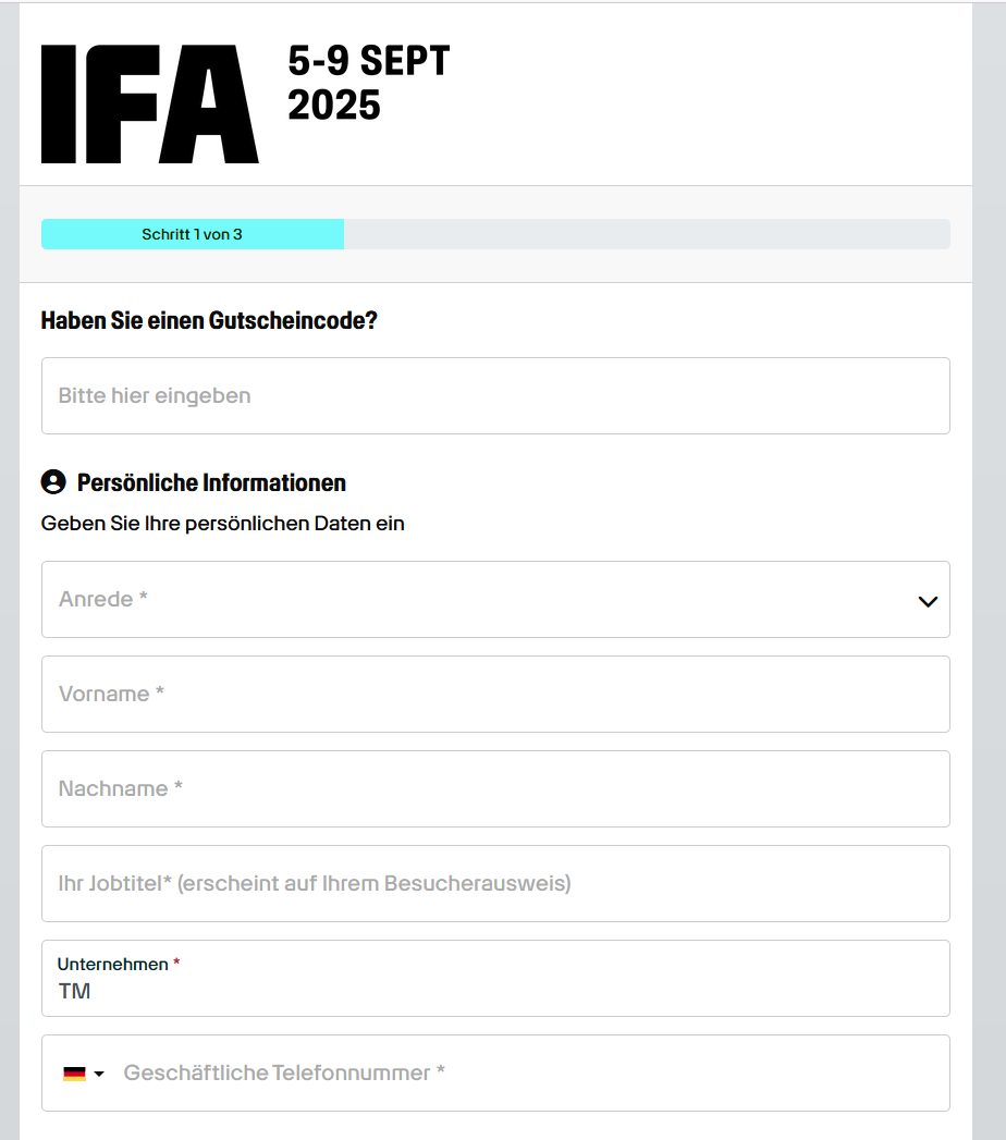 Vorab registrieren Sie sich bitte über das INFONET-Formular für den Besuch auf der IFA.