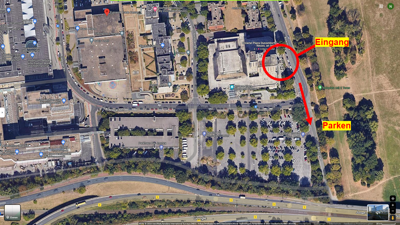 Die Parkplätze am Hotel sind für die Besucher und Aussteller während der Veranstaltung reserviert. Sie können einfach